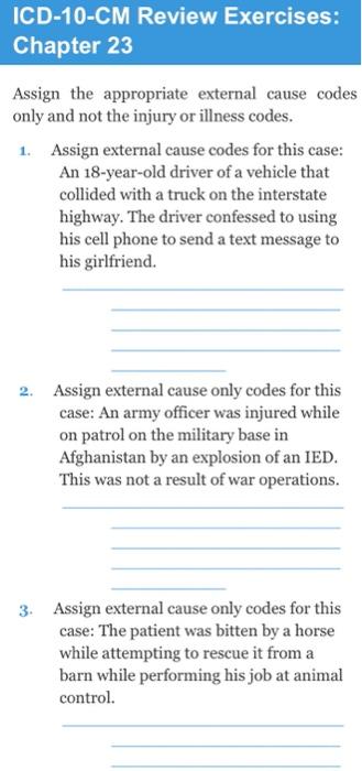 Icd 10 Cm Review Exercises Chapter 23 Assign The Chegg Com